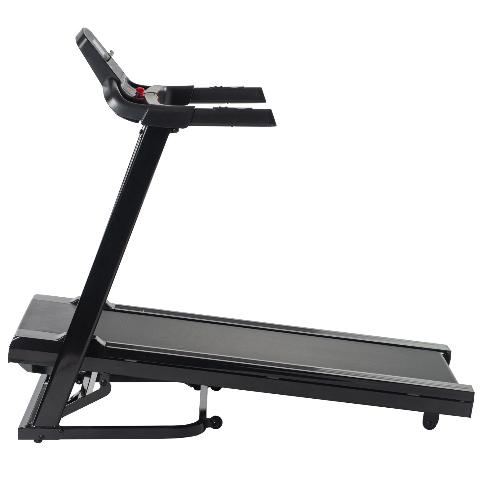 Vďaka nastaviteľnej rýchlosti 1-16 km/h sa bežecký pás hodí tak ako bežecký pás na chôdzu, ako aj intenzívnejšie bežecké tréningy. Vybavený jednosmerným motorom s trvalým výkonom 1,75 KM zabezpečuje plynulý a tichý chod. Bežecká plocha o rozmeroch 125 x 42 cm garantuje komfort aj počas dlhších sedení. Maximálna hmotnosť užívateľa je 100 kg, a vstavený tlmiaci systém chráni kĺby pri behu. Bežecký pás spĺňa normy triedy fitness zariadenia H, čo znamená, že sa ideálne hodí pre domáce použitie.Špecifikácia