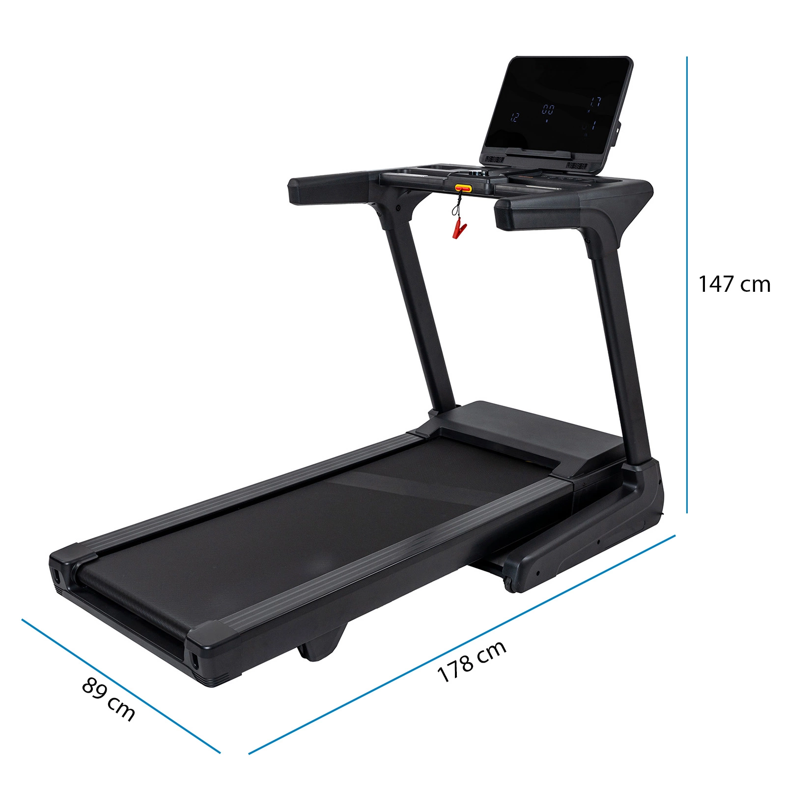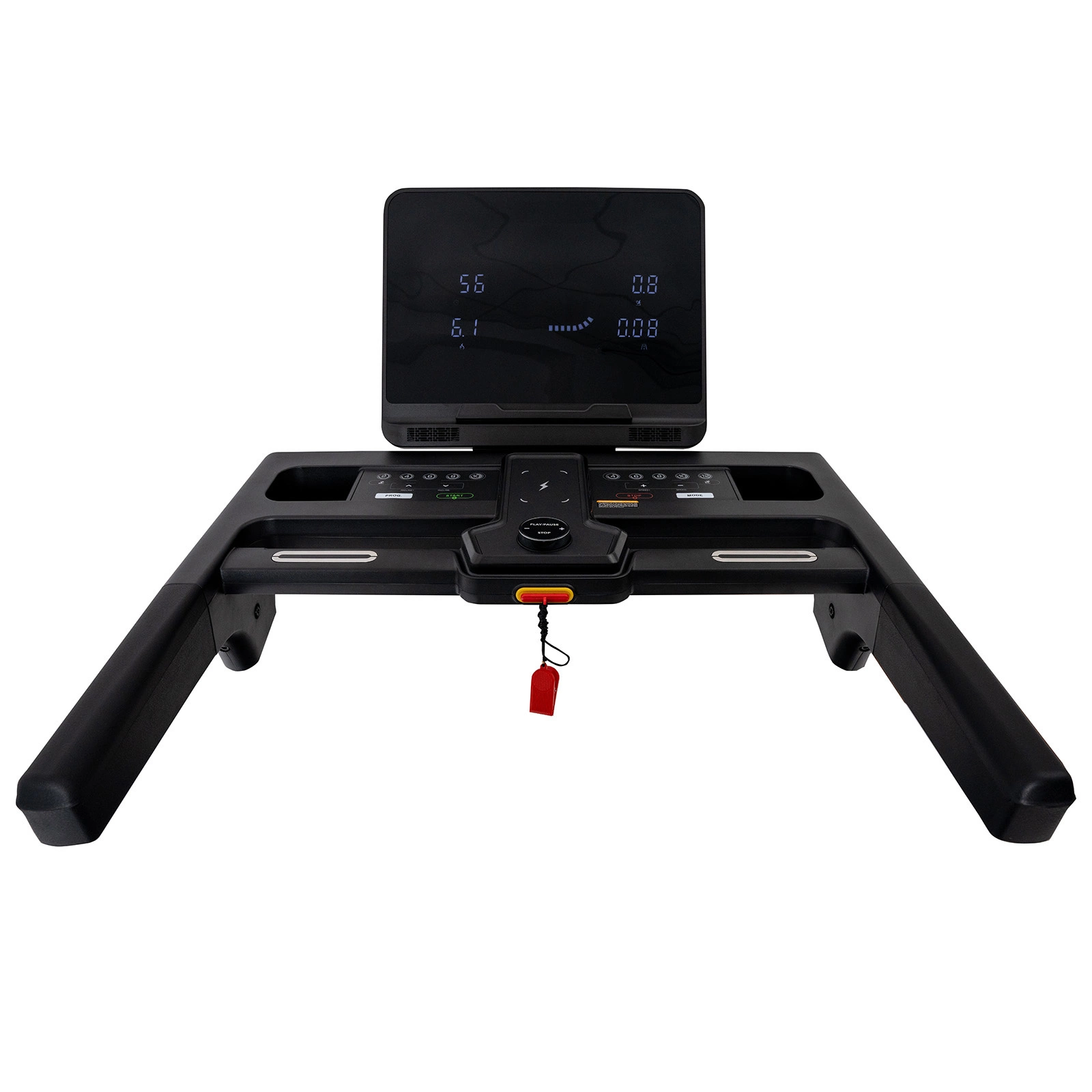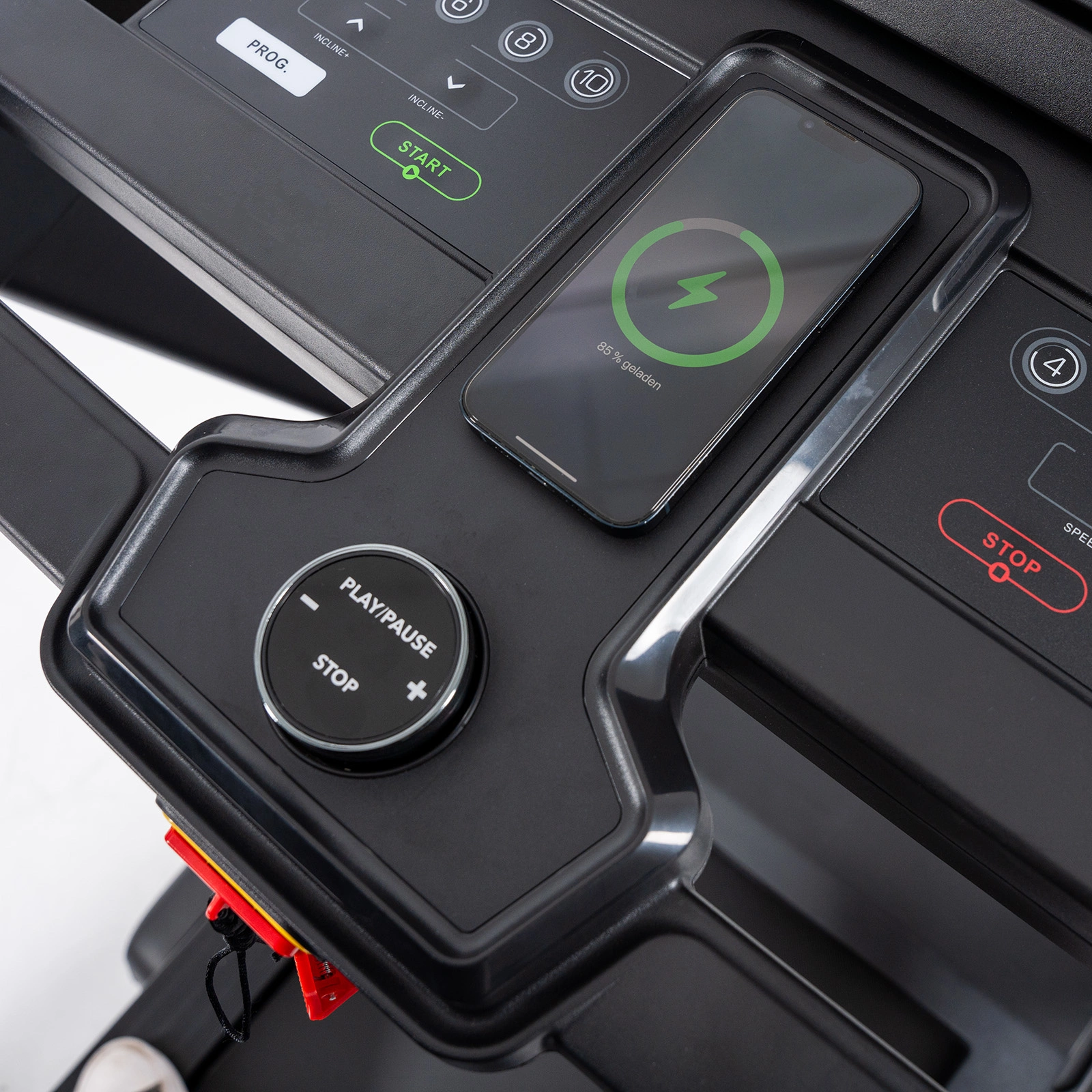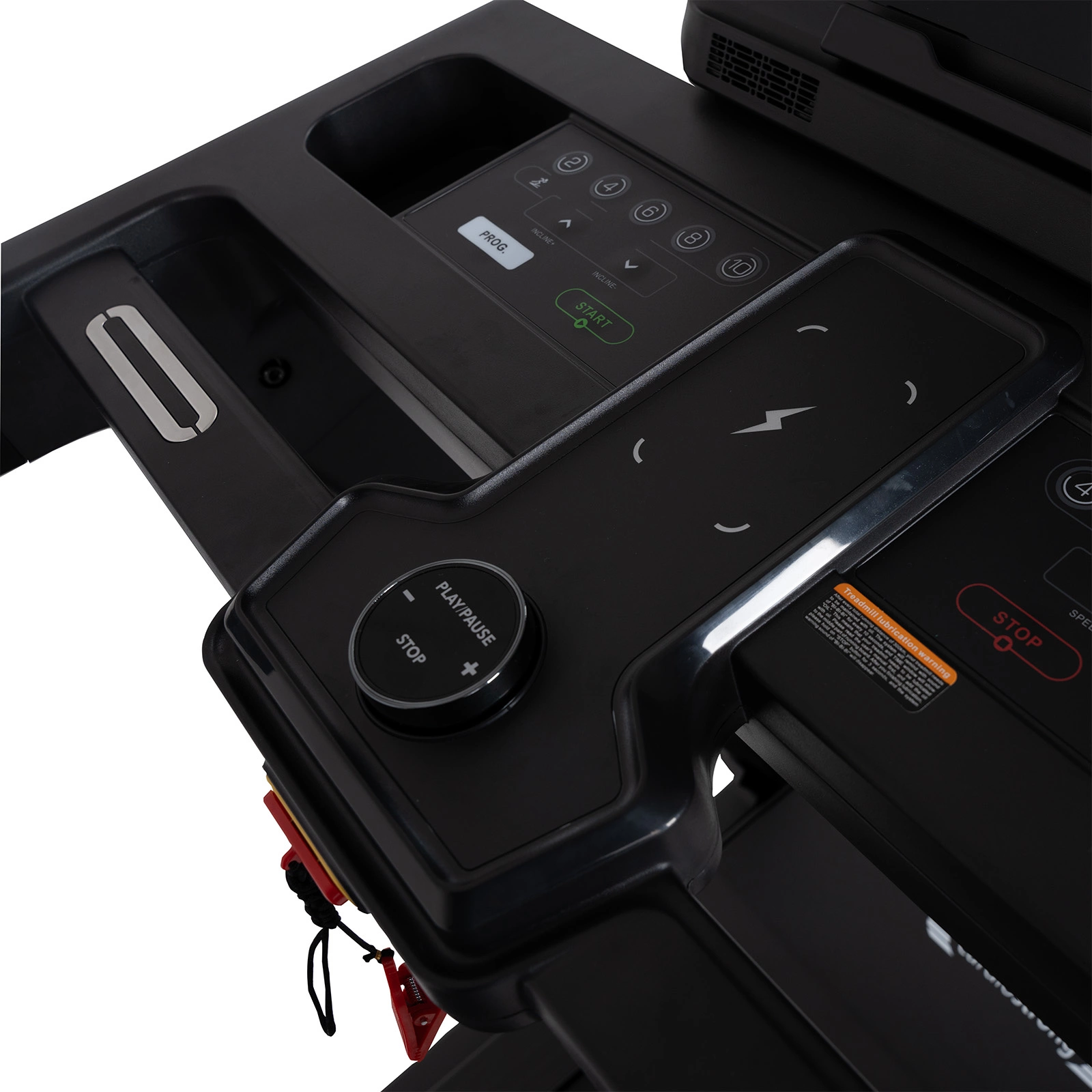 Bezpečnostný kľúč s funkciou automatického zastavenia, v prípade pádu sa bežecký pás okamžite zastaví (vďaka lanku so svorkou pripojeným k odevu)