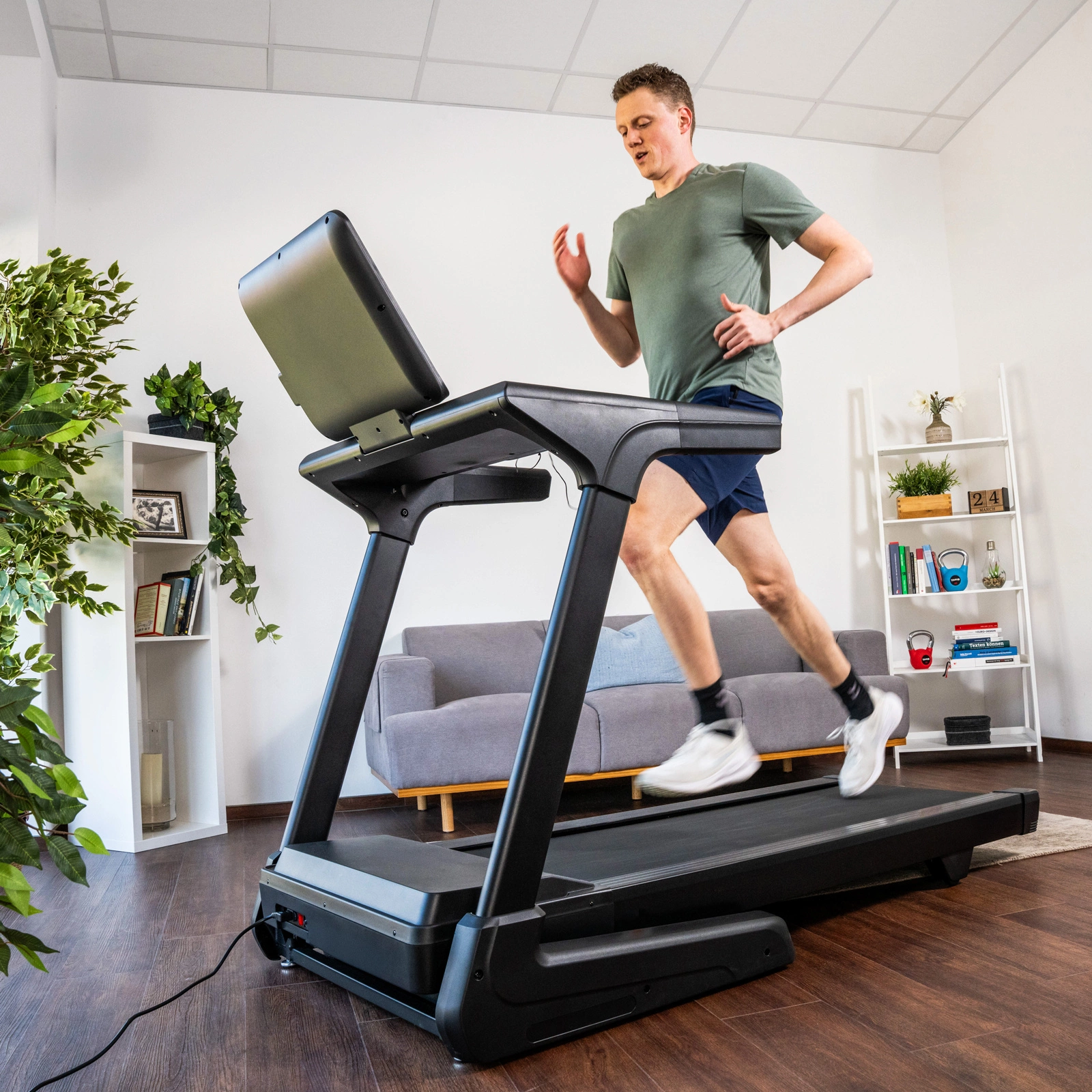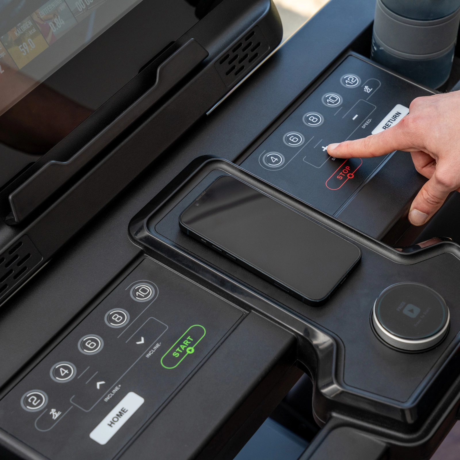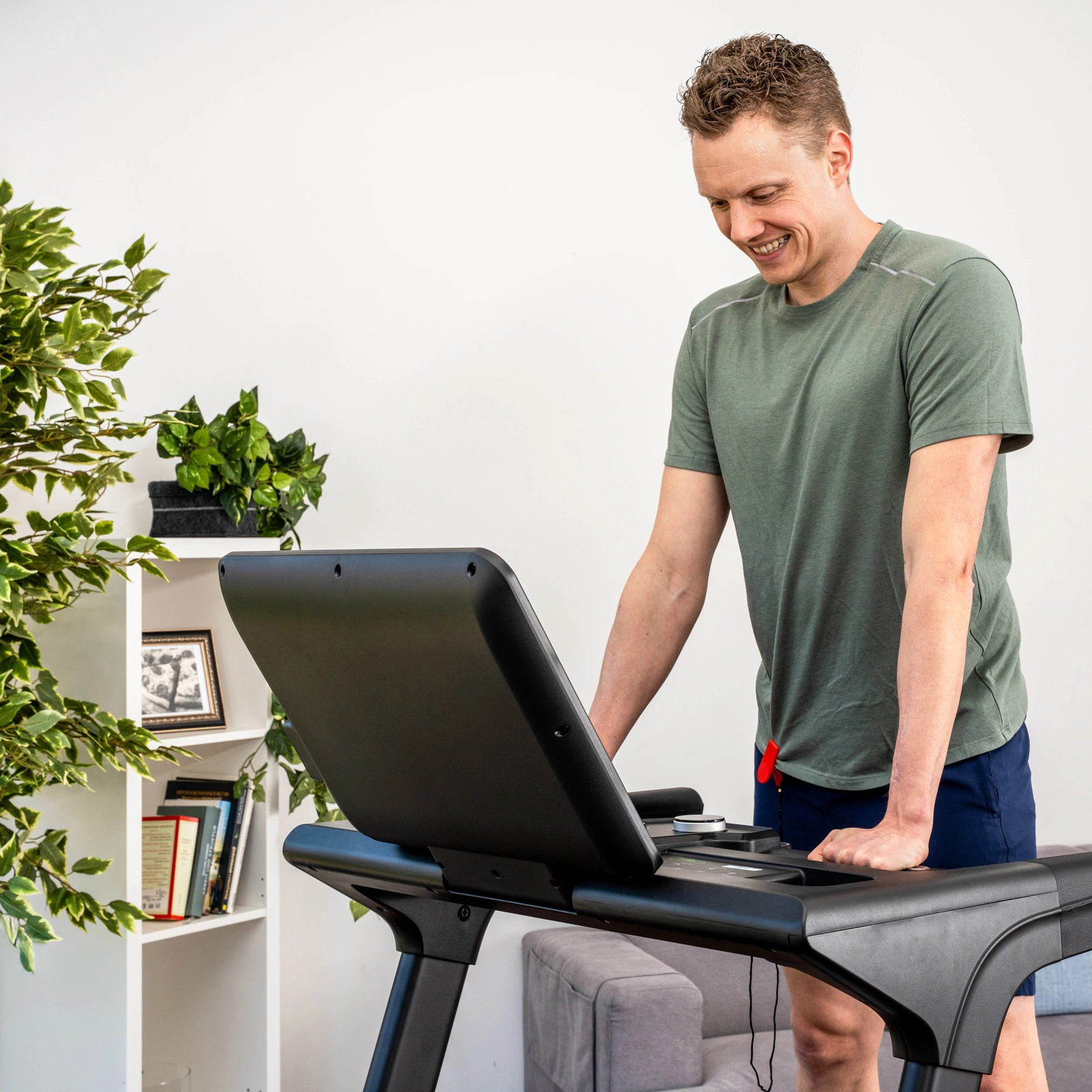 Bežecký pás bol vybavený konzolou s veľkou obrazovkou LCD s uhlopriečkou 15,6 palca, ktorá zobrazuje najdôležitejšie tréningové parametre:- čas