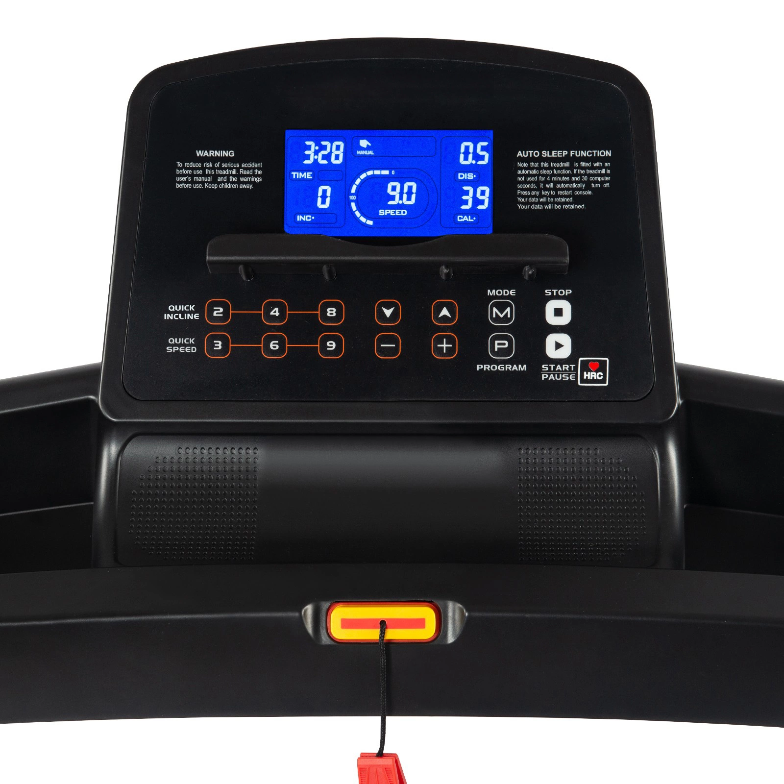 Dodatočnú bezpečnosť zabezpečuje bezpečnostný kľúč s funkciou automatického zastavenia, v prípade pádu sa bežecký pás okamžite vypne.